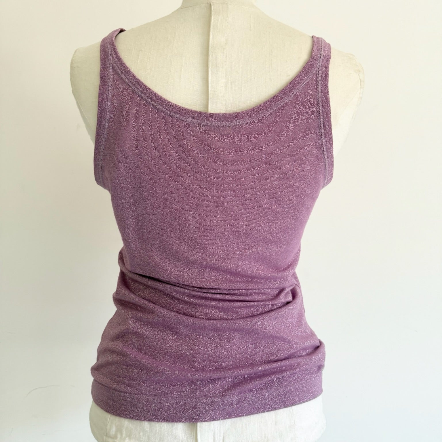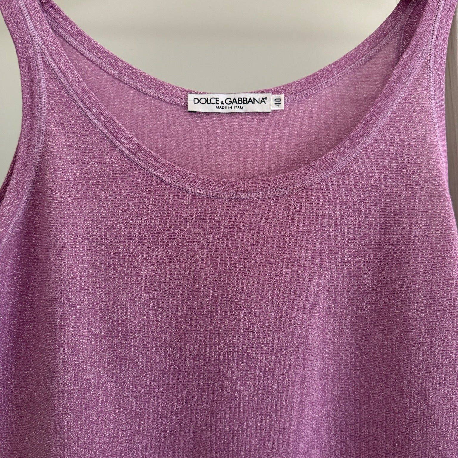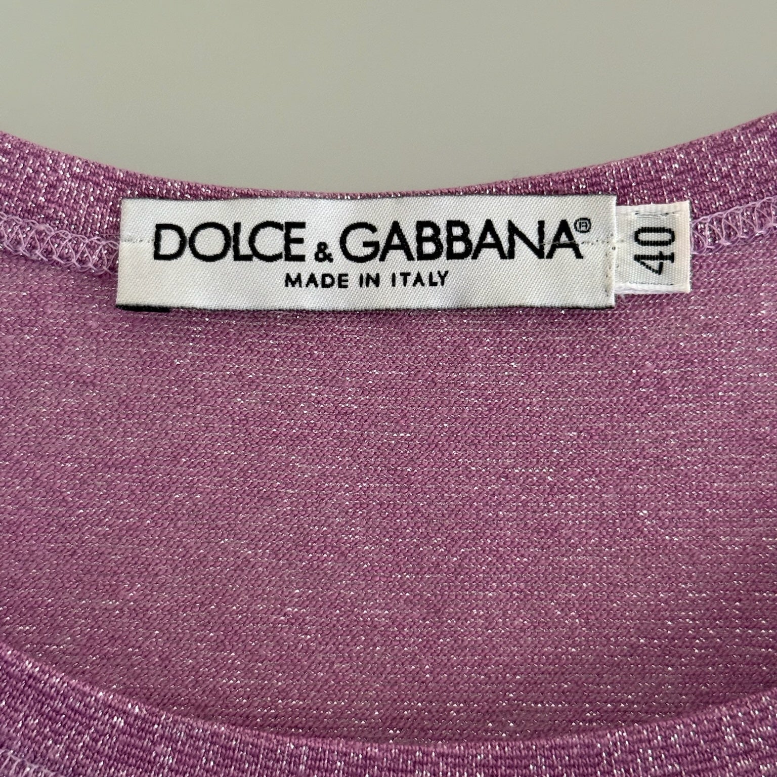 Canotta Dolce & Gabbana in colore lilla. In stile contemporaneo y2k con tessuto ad effetto brillantino. Made in Italy