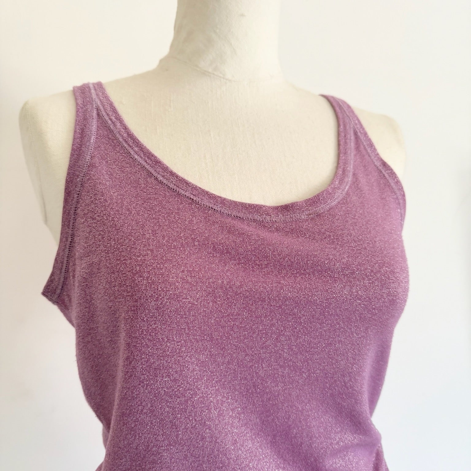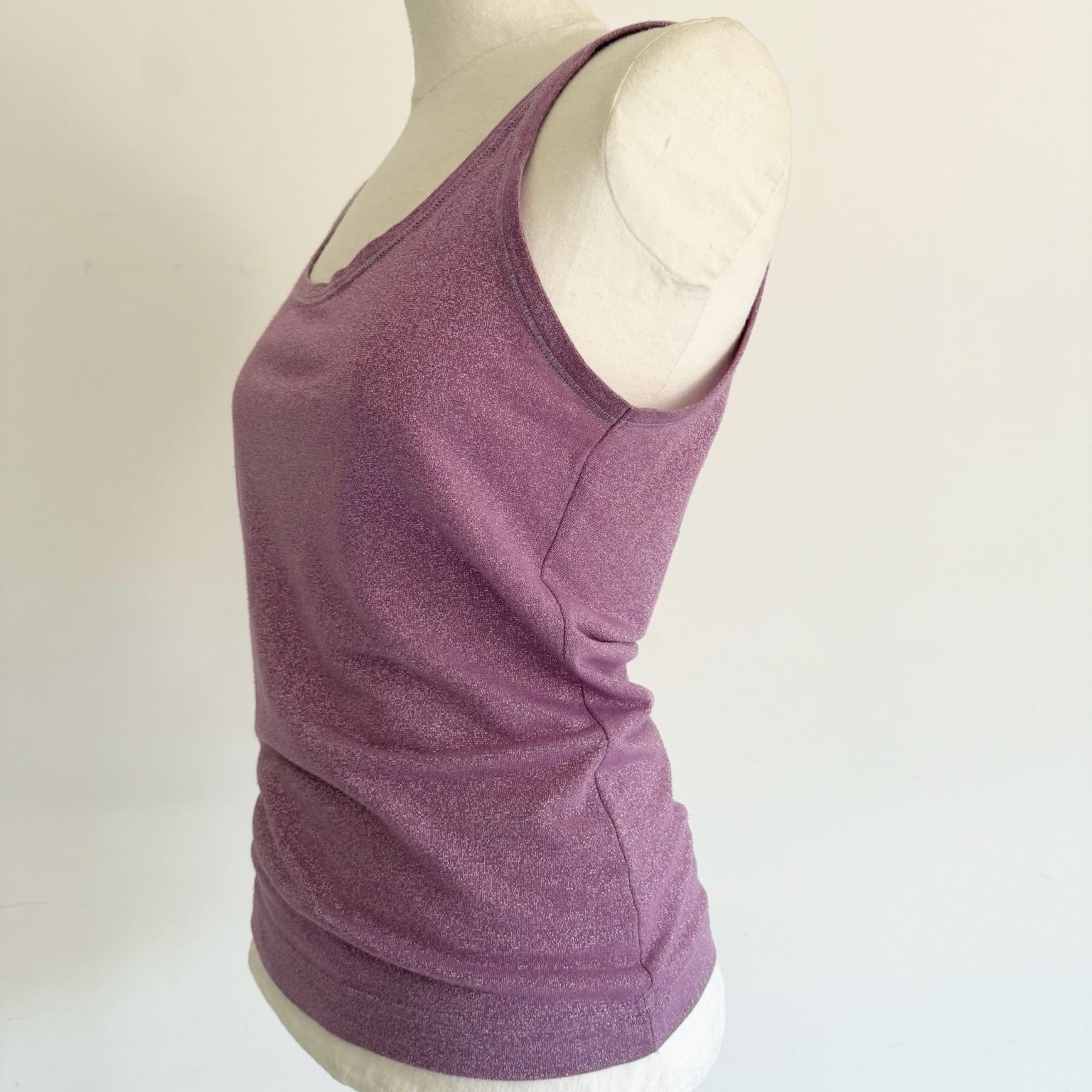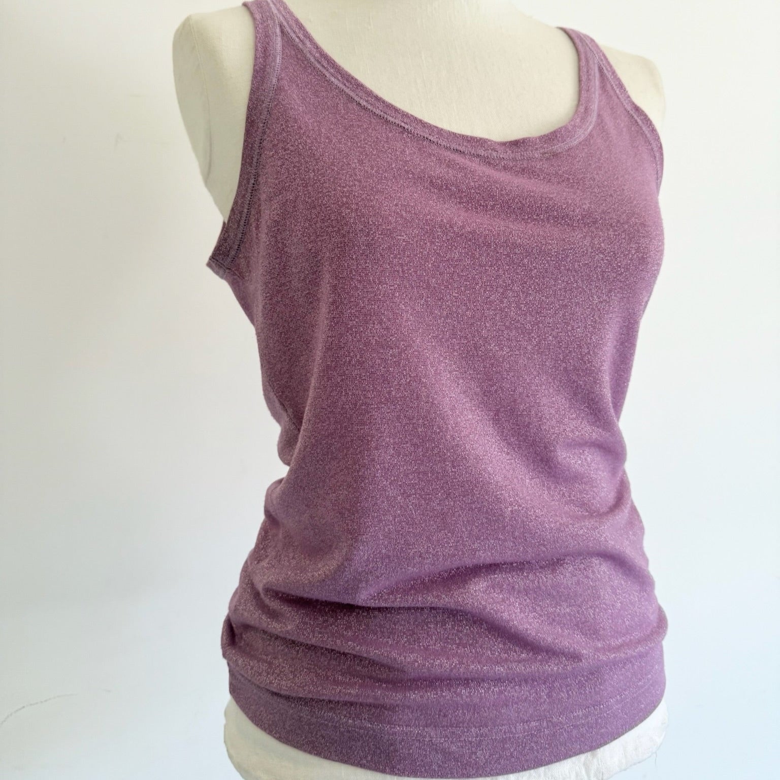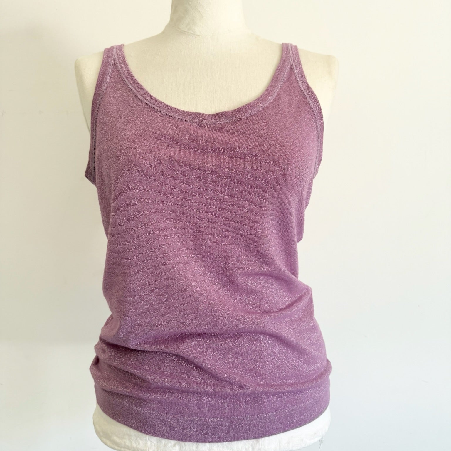 Canotta Dolce & Gabbana in colore lilla. In stile contemporaneo y2k con tessuto ad effetto brillantino. Made in Italy